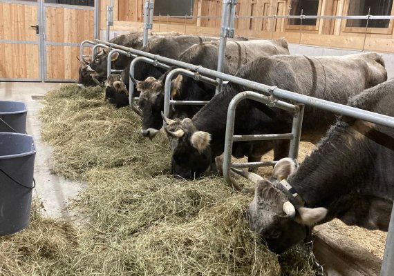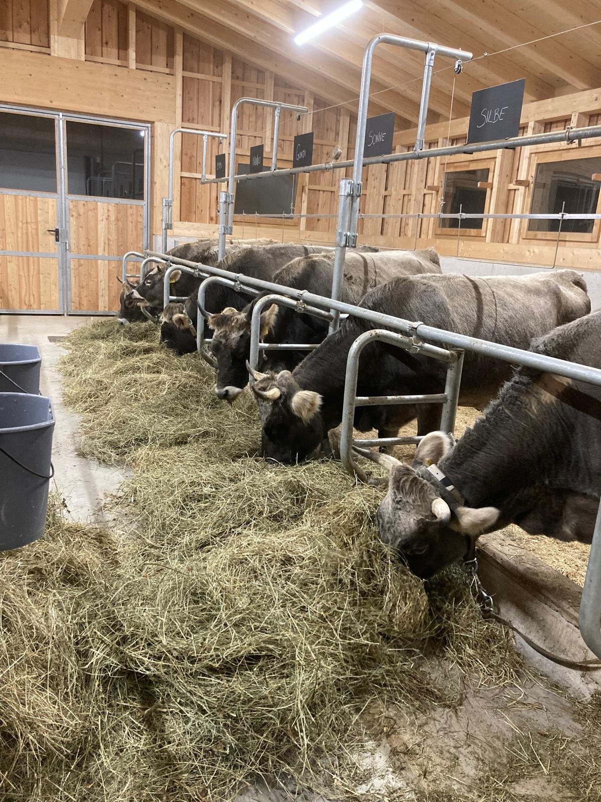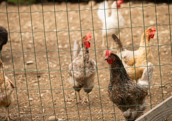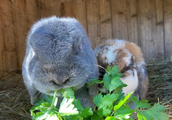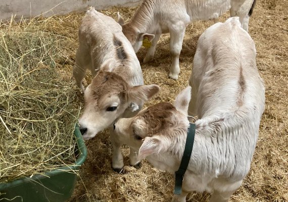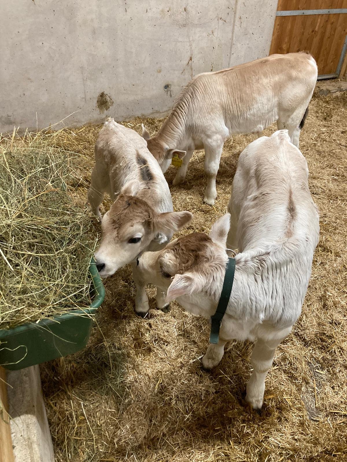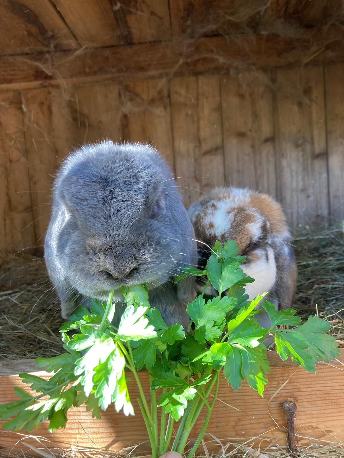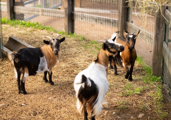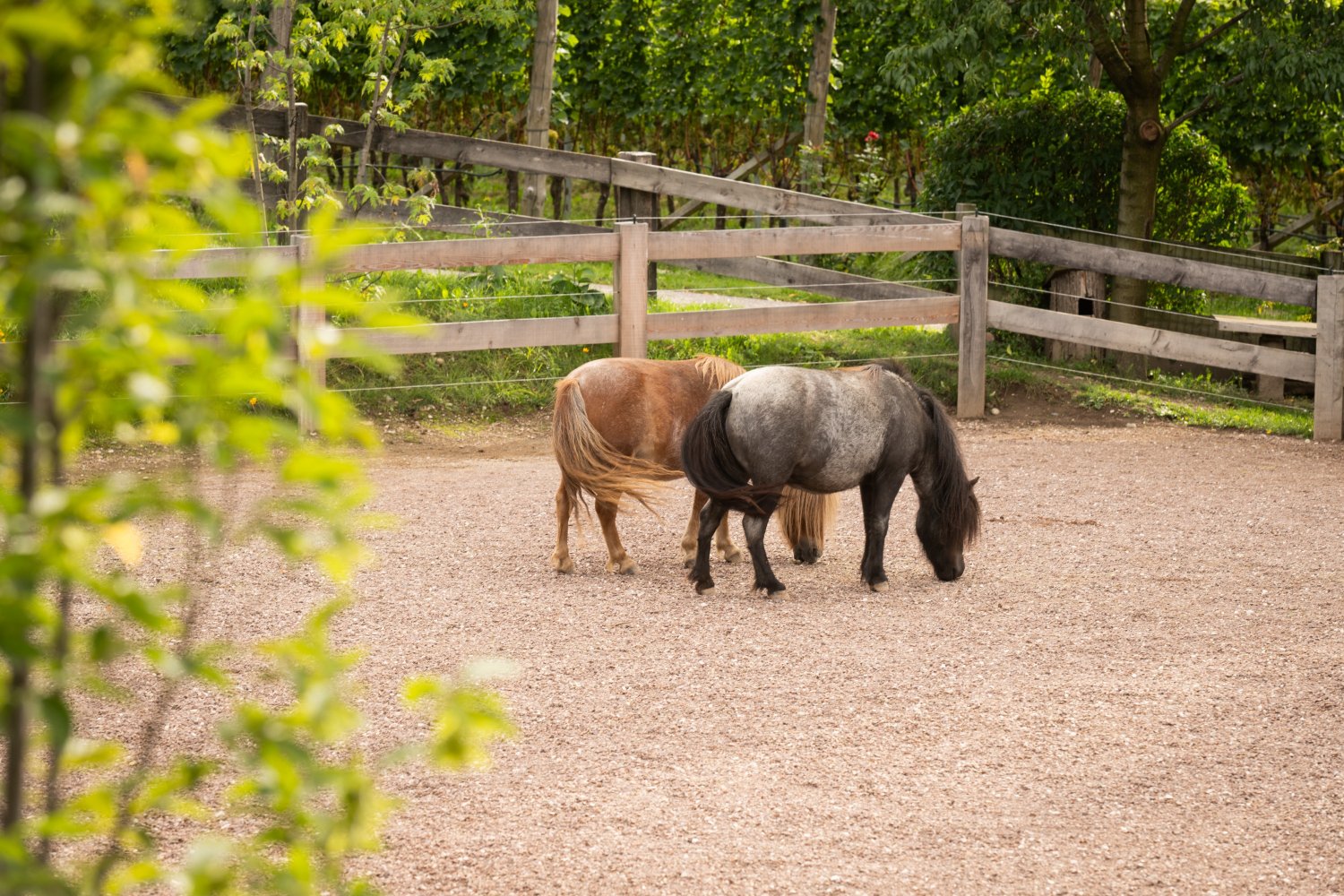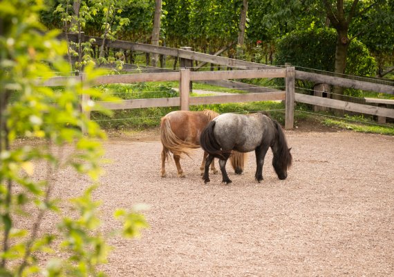 In unserem kleinen Streichelzoo finden Sie Esel, Pony, Pferd, Ziegen, Kühe und Kälber. Außerdem haben wir einen Hahn mit seinen Hühnern und zwei Hasen.